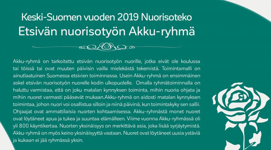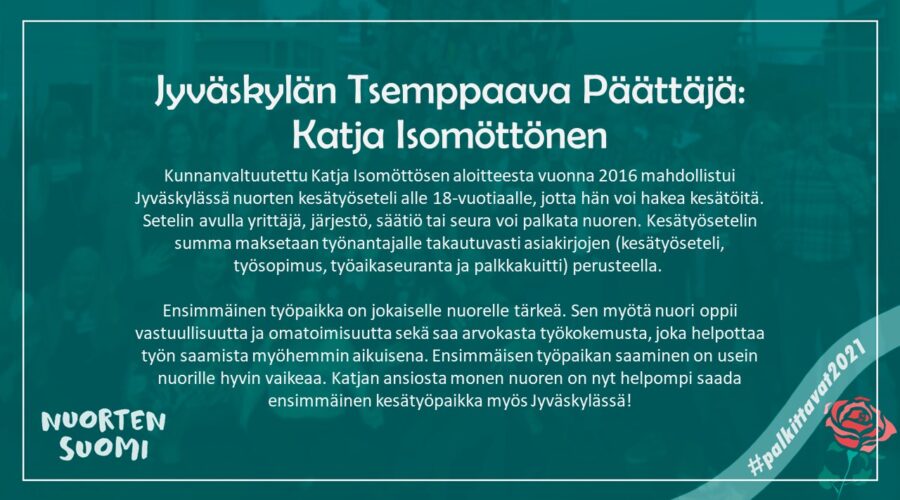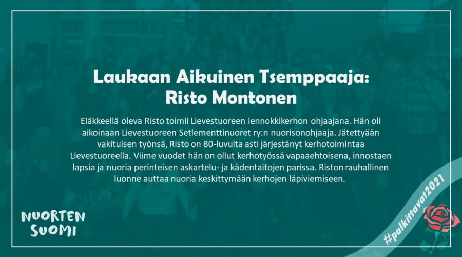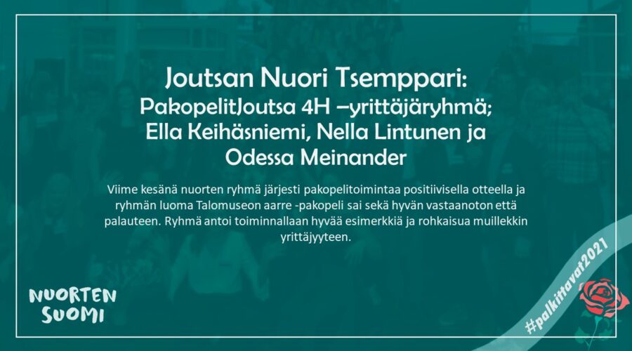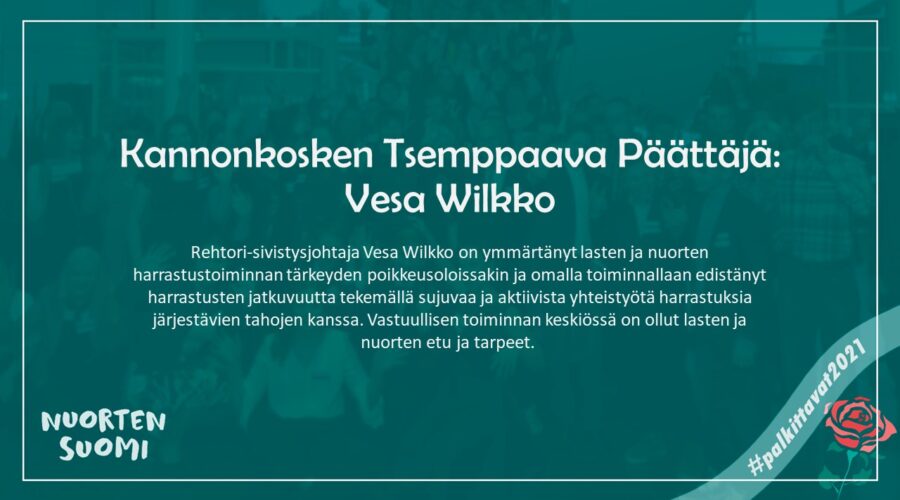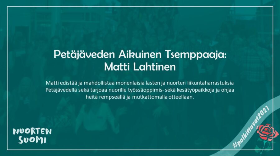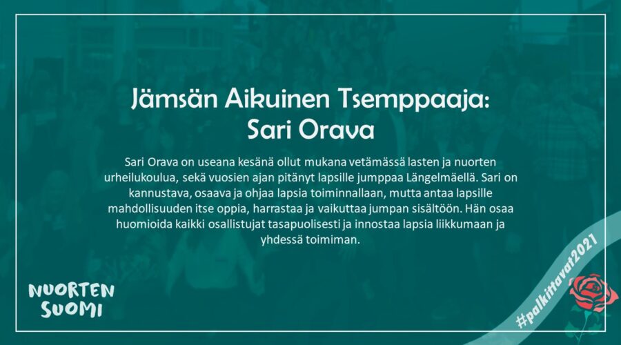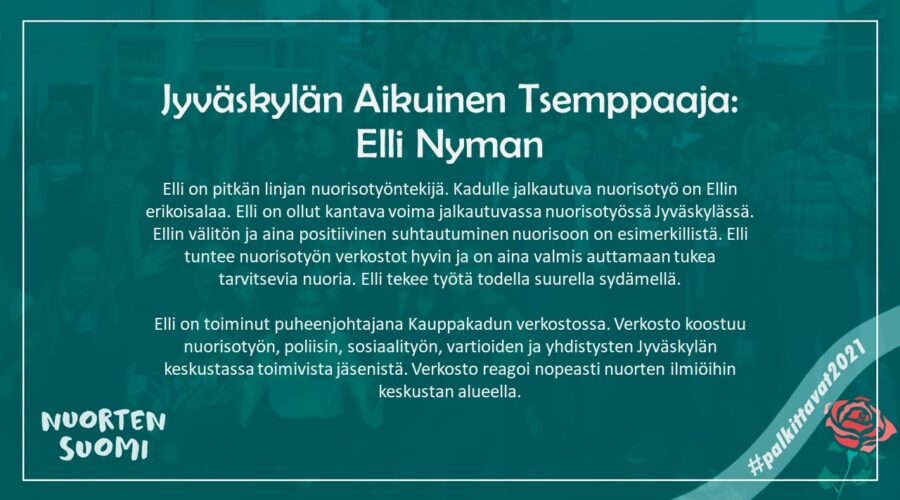 Ehdotusten perusteella on palkittu myös Erityistsemppaajat, Nuorisovaltuusto sekä Nuorisoteko, joita on saanut ehdottaa kuka vain.