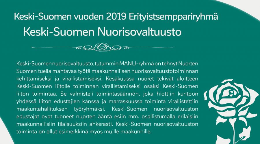 Nuorten kyvyt ja ääni esiin -juhla nostaa esille keskisuomalaisten nuorten aktiivisuutta ja nuorten taustalla toimivia aikuisia. Juhlassa on vuosittain palkittu kuntien nimeämät Nuoret Tsempparit ja Aikuiset Tsemppaajat. Lisäksi kuntien nuorisovaltuustoilla on ollut mahdollisuus nimetä kunnasta päättäjä tai muu aikuinen, joka on toiminnallaan tai päätöksenteollaan mahdollistanut nuorten toimijuutta ja vaikuttamista.